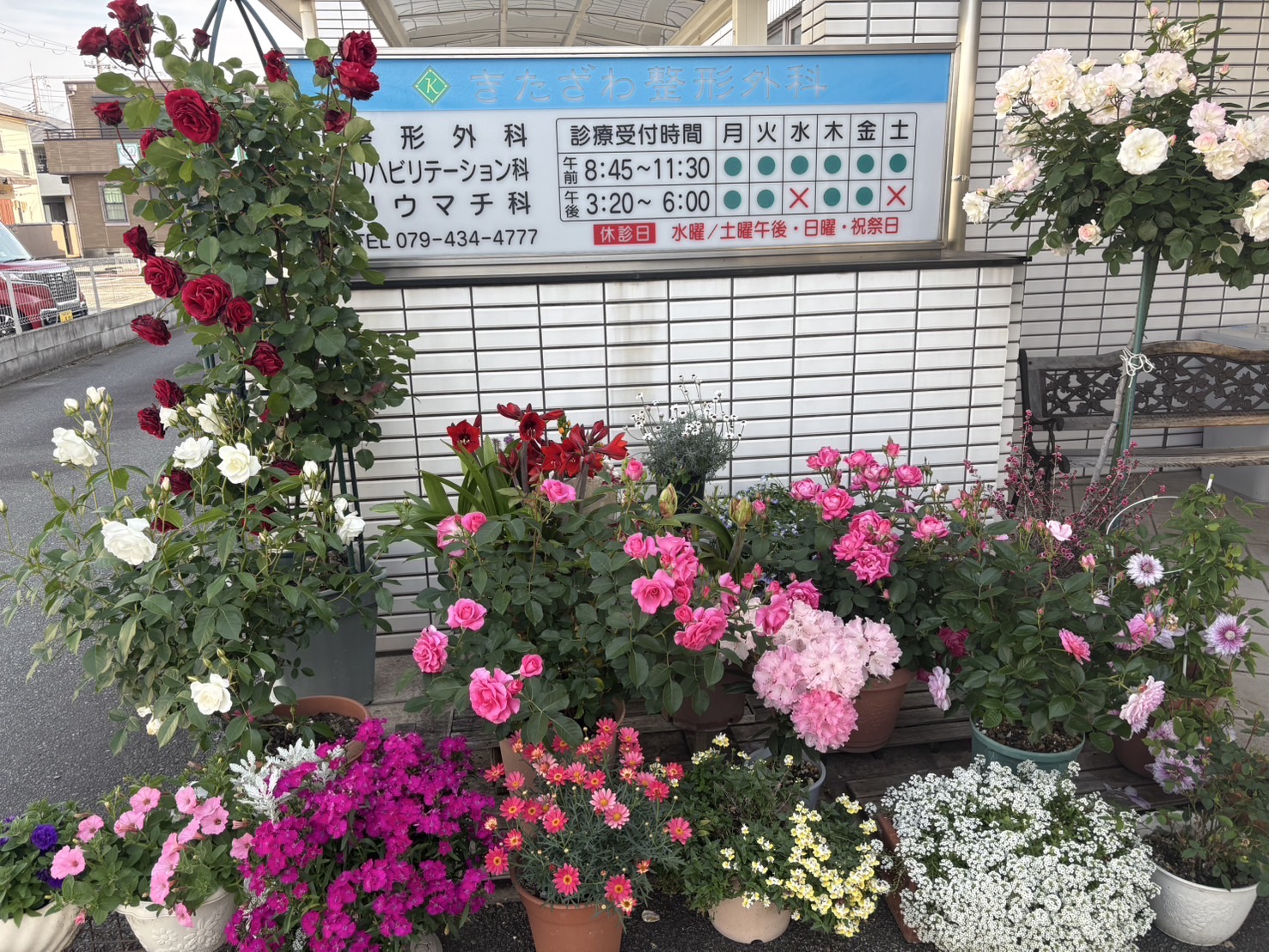 医院の表も春めいてきました。
