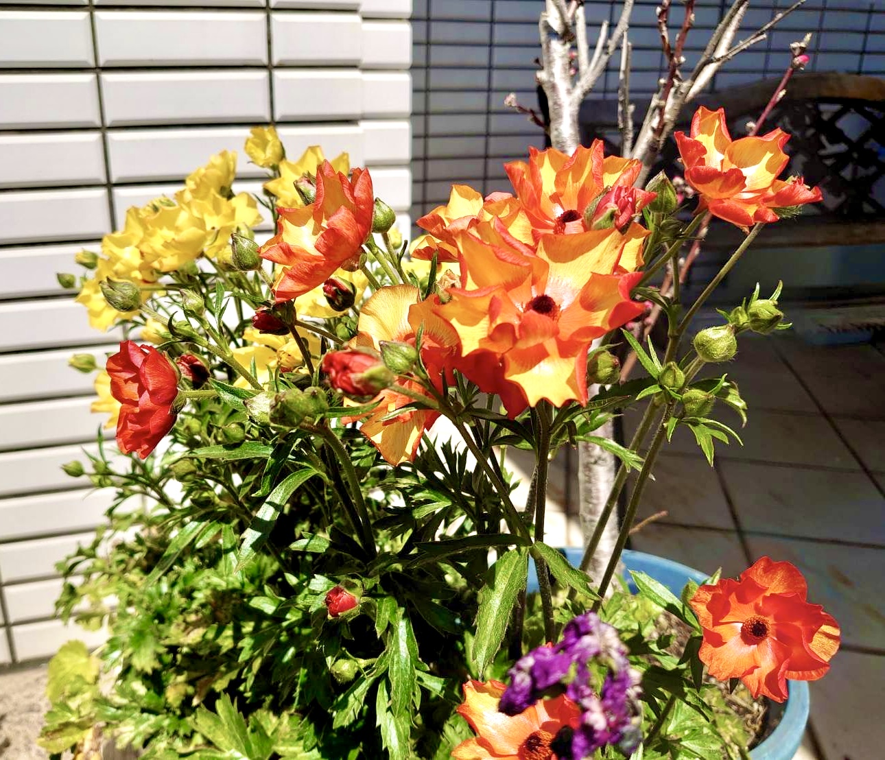花びらがピカピカしていて造花のようなラナンキュラスラックス