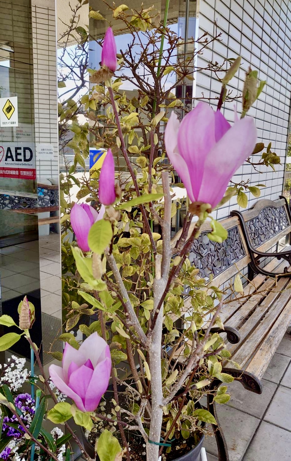 チューリップ咲きの赤紫のモクレン、ジェニーです