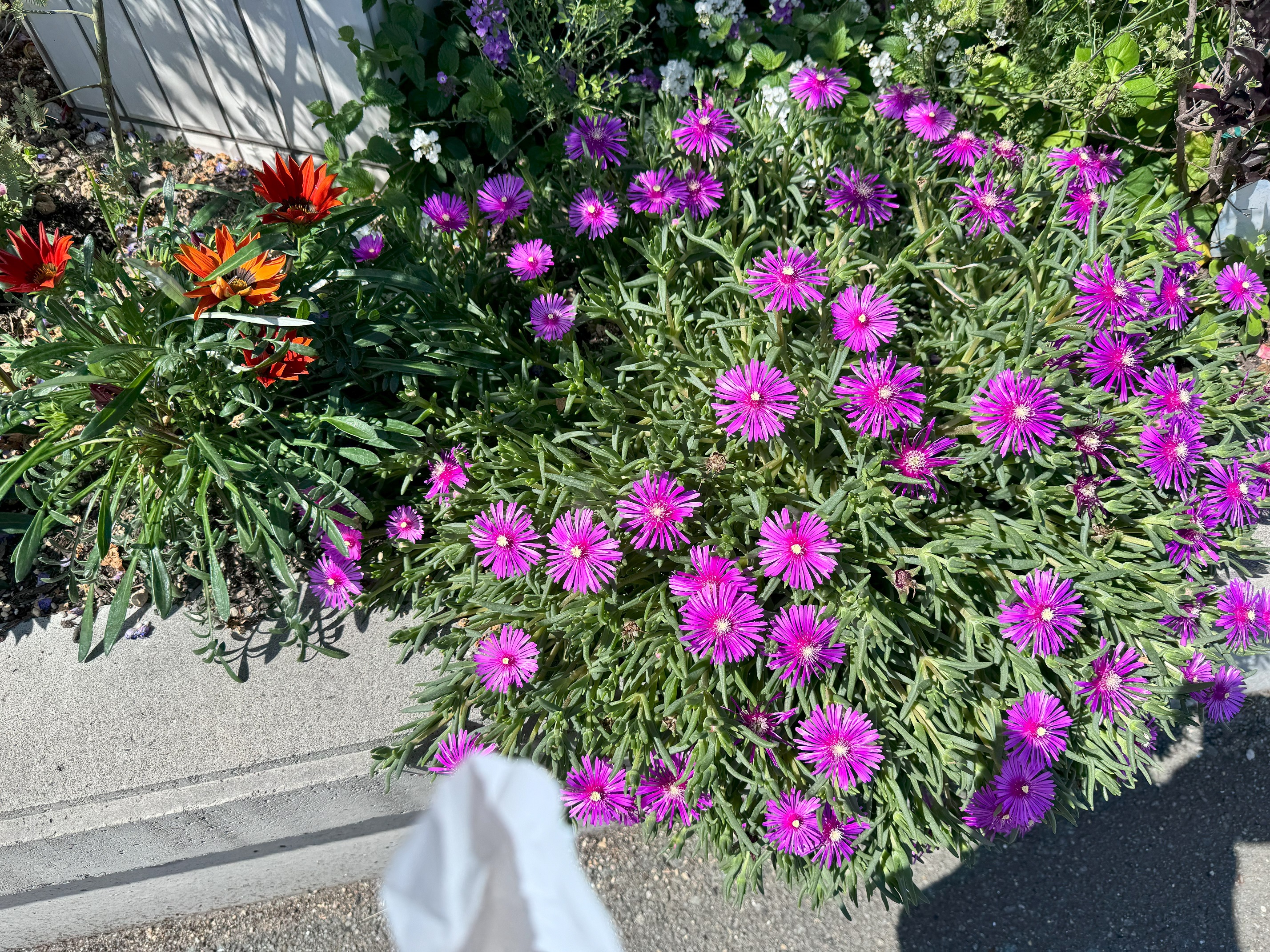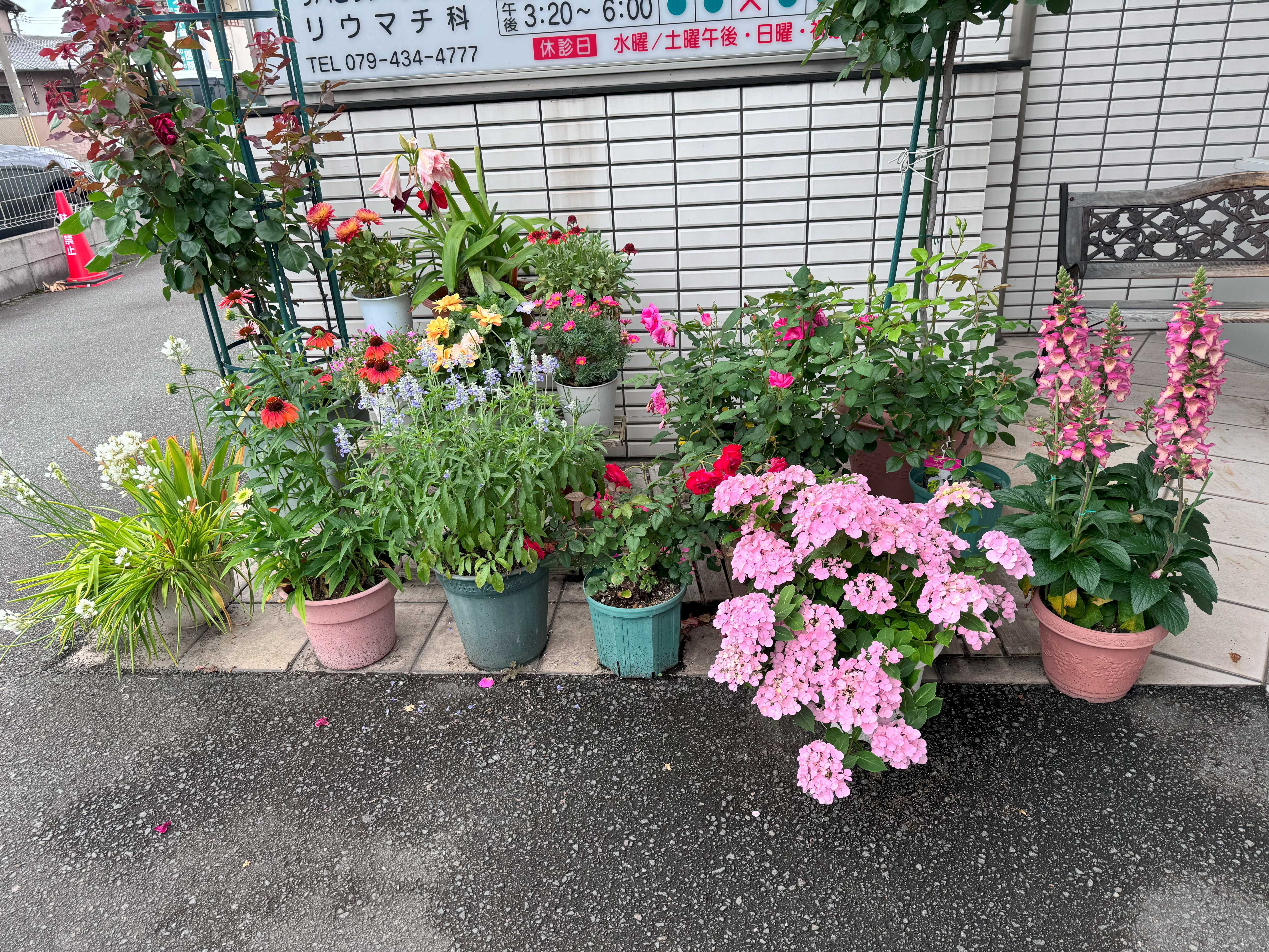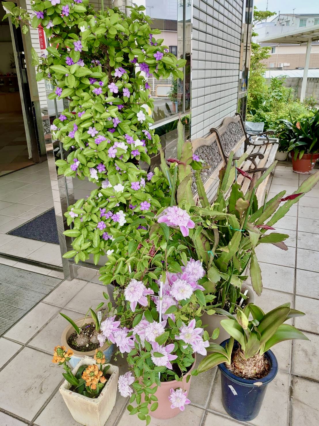 奥の紫と白の二色咲きに見えるのが、ニオイバンマツリ。 前にはクラマチス ジョセフィーヌです