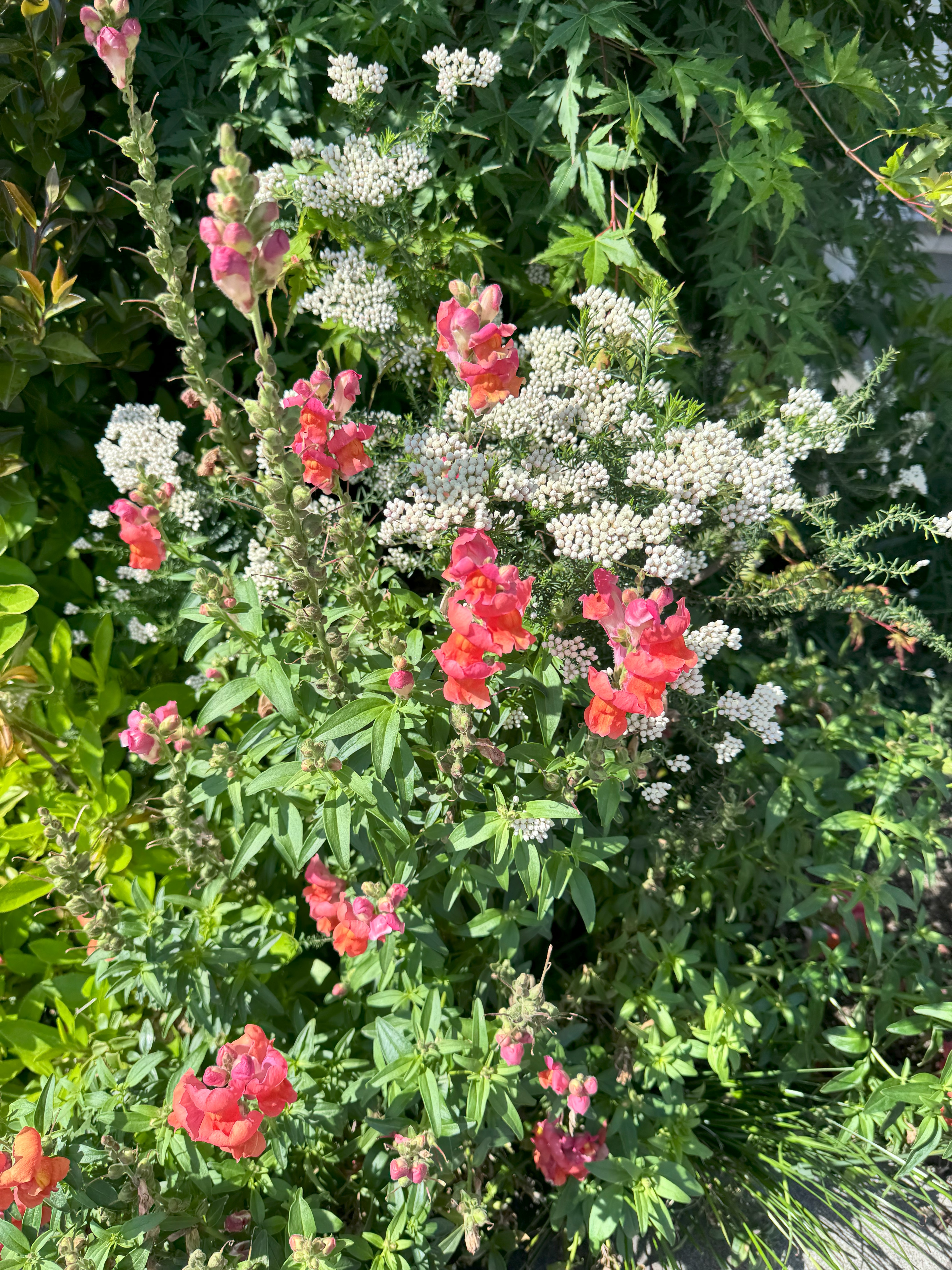 こぼれ種からキンギョソウが咲きました。駐車場の根性花です。