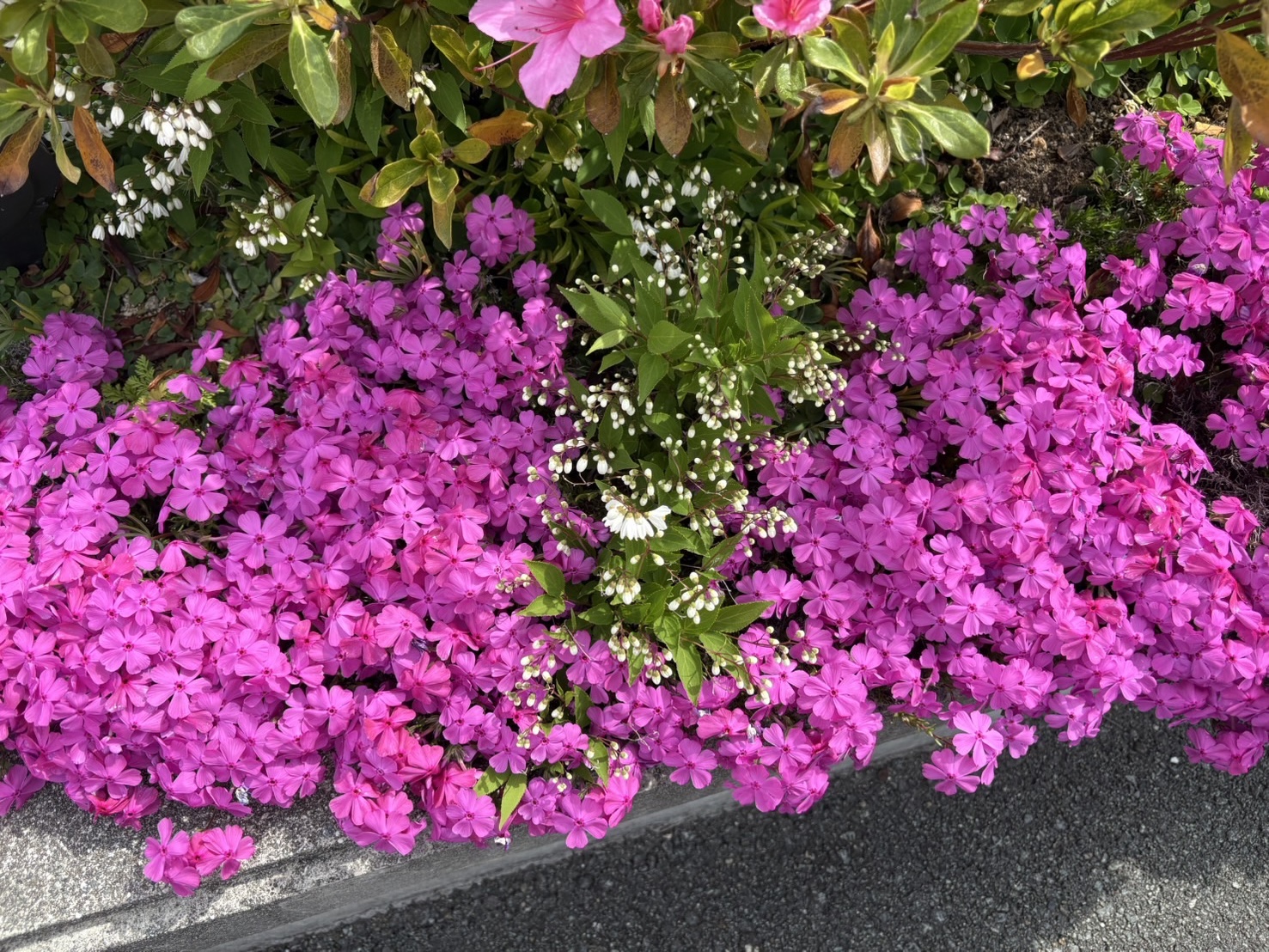 ピンクの芝桜と白いヒメウツギのコラボレーション