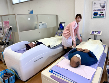 下肢を空気圧でマッサージし血流の改善と筋肉の痛みを除去します。