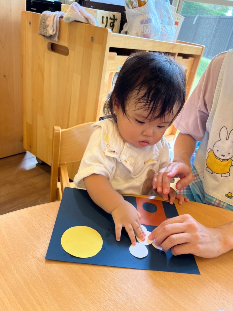 のりを使ってお団子、お月様、たぬきやうさぎ…