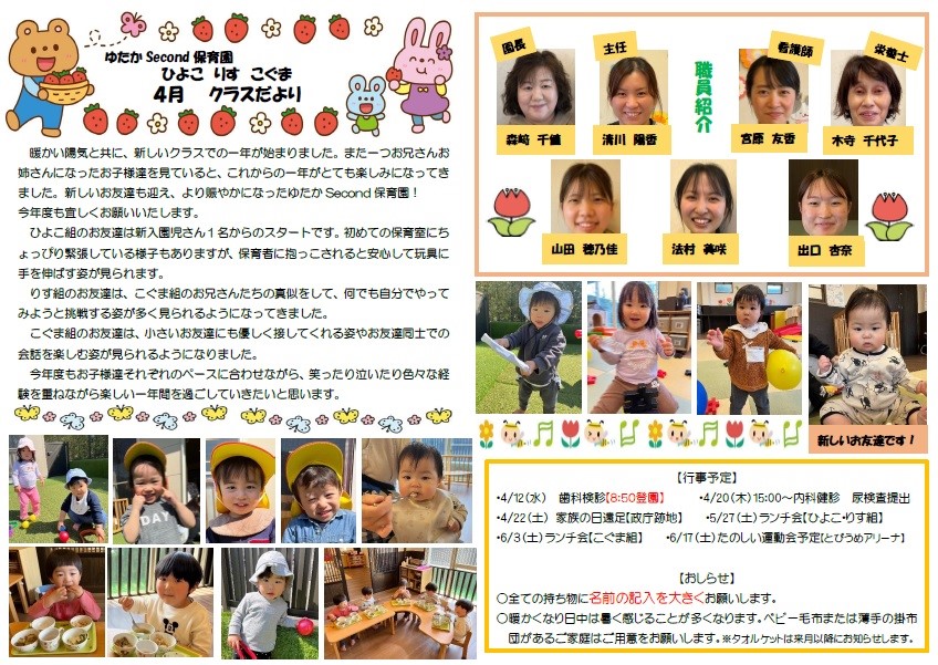 これから採れる旬の食材に触れ、食べ物に興味を持って成長していただきたいと思います。